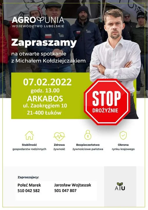 Spotkanie pod hasłem „Stop drożyźnie” będzie poświęcone obecnej sytuacji gospodarczej w kraju i problemom rolników oraz przedsiębiorców.