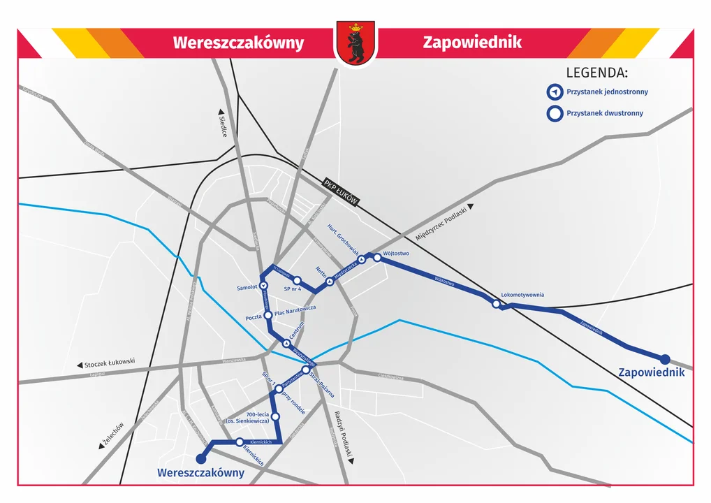 Przewozów dokonywać będzie spółka PKS w Łukowie, a autobusy kursować będą po ulicach Wereszczakówny, Kiernickich, 700-lecia, Partyzantów, Wyszyńskiego, Piłsudskiego, Al. T. Kościuszki, 11 Listopada, Międzyrzeckiej, Wójtostwo i Zapowiednik.