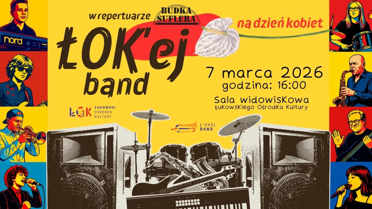Co więcej, przez te wszystkie lata zespół dorobił się już sporej grupy fanów. To klasa sama w sobie. Tym razem ŁOK'ej Band zmierzy się z repertuarem legendarnej Budki Suflera. To trzeba usłyszeć na żywo oraz zobaczyć na własne oczy! „Za ostatni grosz", „Takie tango", czy „Cisza jak ta" to tylko niektóre z przebojów jakie usłyszymy podczas tego wyjątkowego wieczoru. Podczas koncertu na scenie ŁOK wystąpią: Oliwia Gręzak (wokal), Anton Fartusznyi (trąbka), Mariusz Gajda (saksofon), Szymon Borychowski (piano), Mikołaj Gajowy (wokal), Jacek Stepulak (gitara basowa), Mikołaj Michałowski (gitara) oraz Kacper Walaszek (perkusja). Tego nie możecie przegapić! Kup bilet już teraz, bo rozchodzą się jak świeże bułeczki. Na koncert ŁOK'ej Band z repertuarem Budki Suflera zapraszamy w sobotę 7 marca 2026r. do Łukowskiego Ośrodka Kultury.