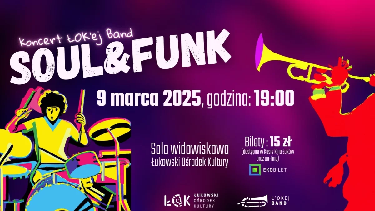 Koncert ŁOK'ej Band "Soul&Funk" odbędzie się w niedzielę 9 marca, o godz. 19:00 w sali widowiskowej Łukowskiego Ośrodka Kultury.