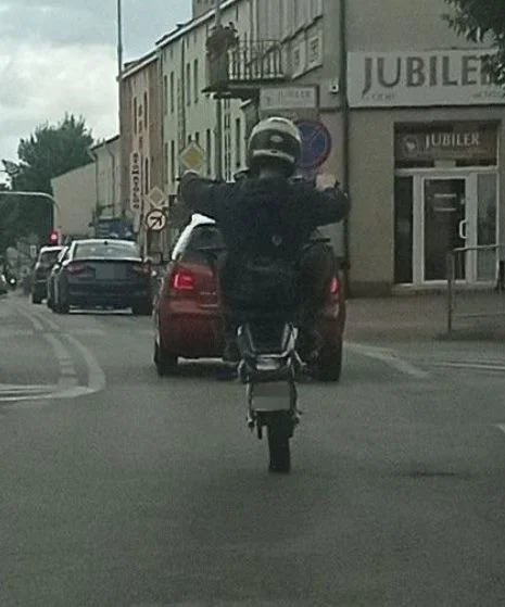 Do łukowskiej komendy wpłynął mail, do którego załączonych było kilka zdjęć. Z treści wiadomości wynikało, że kilkanaście minut wcześniej kierujący motocyklem jadąc ulicami miasta poruszał się jednośladem na jednym kole. Przesłane zdjęcia obrazowały sytuację.