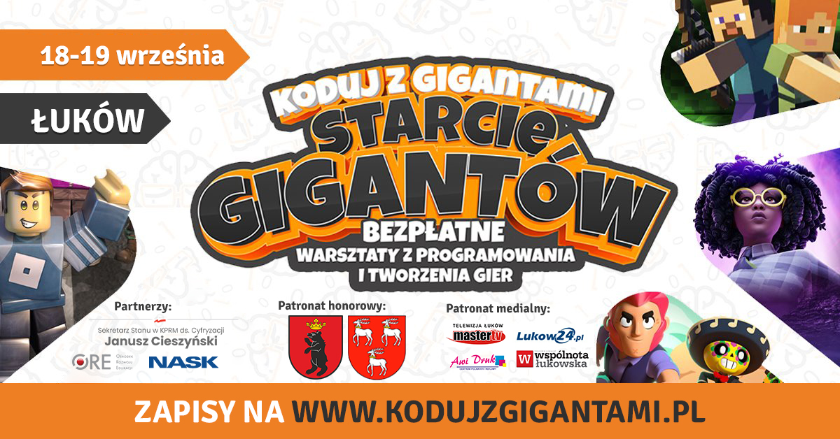 Kontakt: tel.: 695 013 794, e-mail: lukow@giganciprogramowania.edu.pl