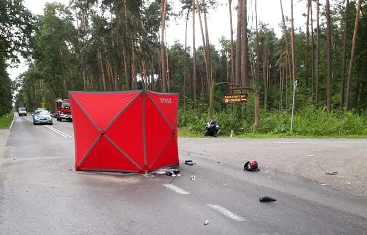 Śmiiertelny wypadek na drodze krajowej nr 63. - Doszło do zderzenia samochodu osobowego i trzech motocykli. Samochód znajdował się na jezdni, a motocykle poza nią - informuje Komenda Powiatowa Państwowej Straży Pożarnej w Łukowie.Jak czytamy w strażackim komunikacie Kierująca SUZUKI RGSX znajdowała się pod opieką ZRM, drugi poszkodowany kierowca YAMAHY R1 znajdował się na poboczu drogi. Pozostali uczestnicy zdarzenia kierowca MERCEDESA i SUZUKI SV nie zgłaszali żadnych dolegliwości.