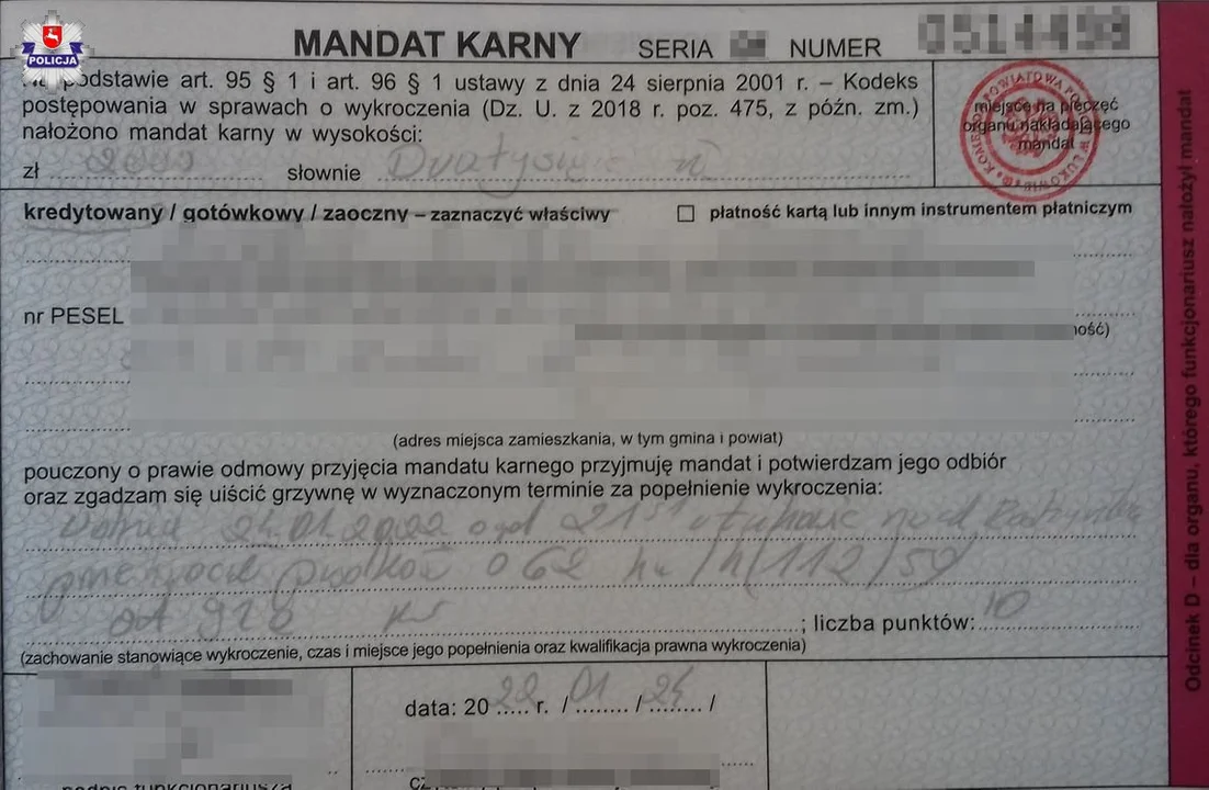 Zatrzymano jadącego ulicą Radzyńską rekordzistę. 32-latek w obszarze zabudowanym jechał toyotą z prędkością 112 km/h. Za przekroczenie dozwolonej prędkości o 62 km/h mężczyzna został ukarany mandatem w wysokości dwóch tysięcy złotych. Oprócz tego dostał 10 punktów karnych. Stracił też prawo jazdy na trzy miesiące.