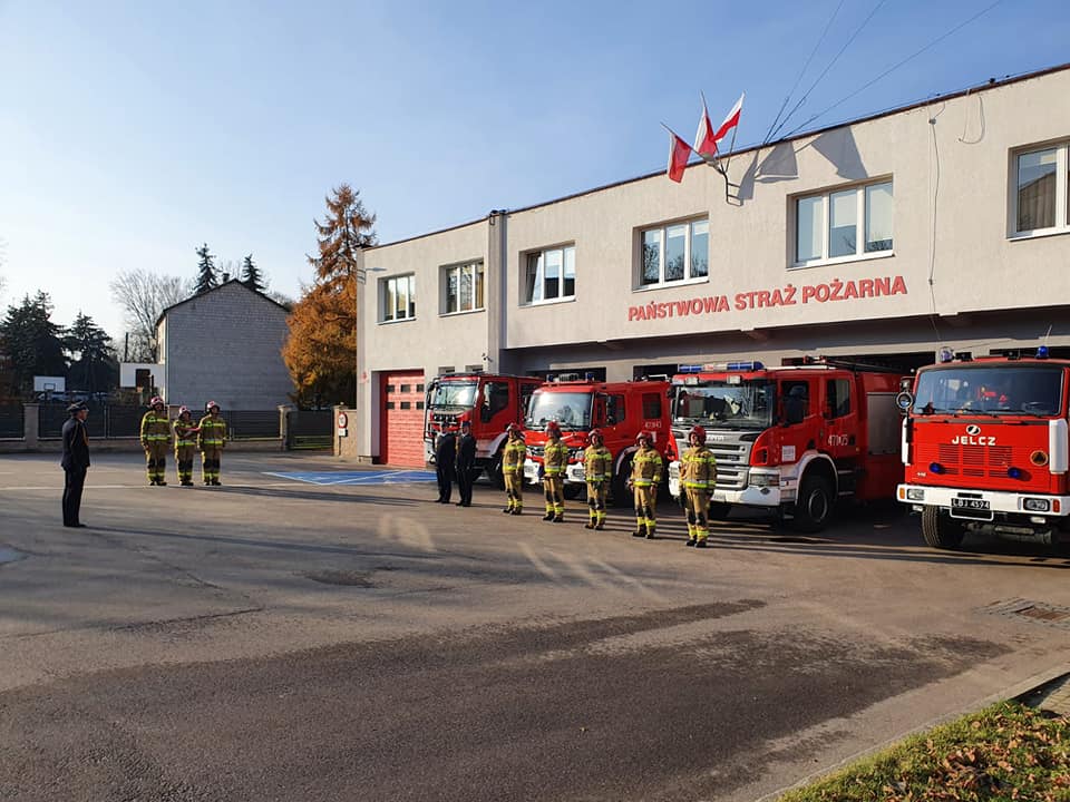 Włączając się w akcję Niepodległa dla hymnu punktualnie o godzinie 12.00 przed budynkiem Komendy poczet flagowy dokonał uroczystego podniesienia flagi państwowej na maszt podczas, którego strażacy wspólnie odśpiewali Mazurka Dąbrowskiego.