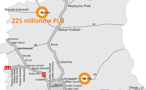 GDDKiA wybrała w tym tygodniiu najkorzystniejszą ofertę w przetargu na przygotowanie dokumentacji projektowej dla obwodnicy Łukowa w ciągu DK63/76. Przetarg dotyczył przygotowania Studium techniczno-ekonomiczno-środowiskowego z elementami koncepcji programowej wraz z materiałami do uzyskania decyzji o środowiskowych uwarunkowaniach oraz dokumentacji niezbędnej do przeprowadzenia postępowania przetargowego na wyłonienie wykonawcy tej inwestycji. Komisja przetargowa za najlepszą uznała ofertę firmy SAFEGE, która opiewa na kwotę 2,6 mln zł.