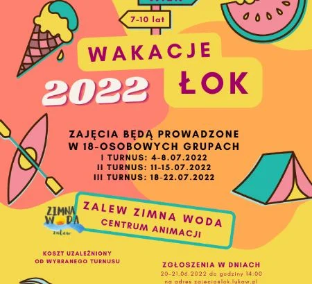 Łukowski Ośrodek Kultury zaprasza dzieci w wieku 7-10 lat do wspólnego spędzania wakacji. Aby zapisać dziecko na zajęcia, należy wysłać komplet dokumentów (formularze znajdują się w załącznikach) na adres e-mailowy zajecia@lok.lukow.pl. Zgłoszenia przyjmowane będą 20 i 21 czerwca.