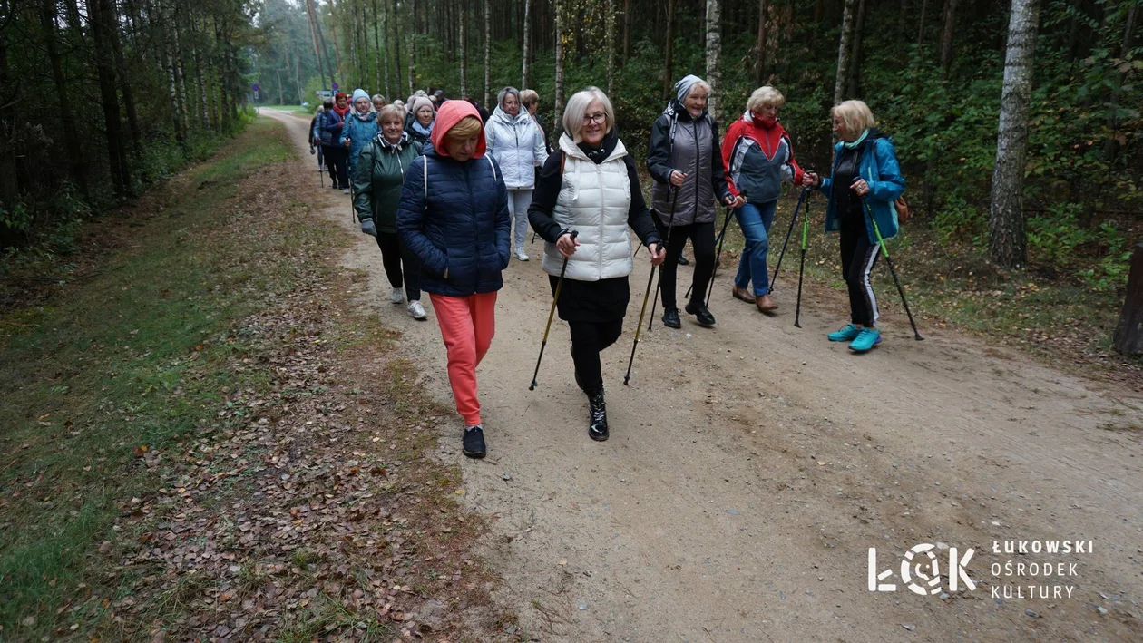 Ponad 50 osób wyruszyło z kijkami w kilkukilometrową trasę, ćwicząc pod okiem instruktorki nordic walking: Agnieszki Zaniewicz, reprezentującej Szkołę Policealną Medyczne - Studium Zawodowe im. J. Korczaka w Łukowie.