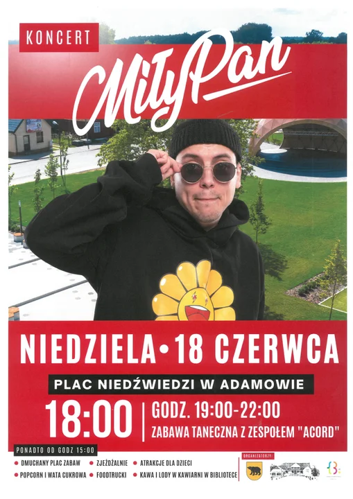 Koncert Miłego Pana rozpocznie się w niedzielę 18 czerwca o godz. 18 na Placu Niedźwiedzim w Adamowie. Po koncercie zabawę mieszkańcom Adamowa i nie tylko zapewni zespół Acord.