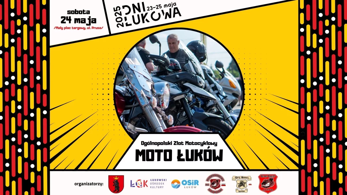 - Drogie motocyklistki i motocykliści, pasjonaci dwóch kółek i wolności na asfalcie! Już wkrótce ruszamy z Ogólnopolskim Zlotem Motocyklowym organizowanym z okazji Dni Łukowa 2025. Szykuje się impreza, która rozgrzeje silniki i serca! - zaprasza do udziału Tomasz Kanadys, instruktor ŁOK.