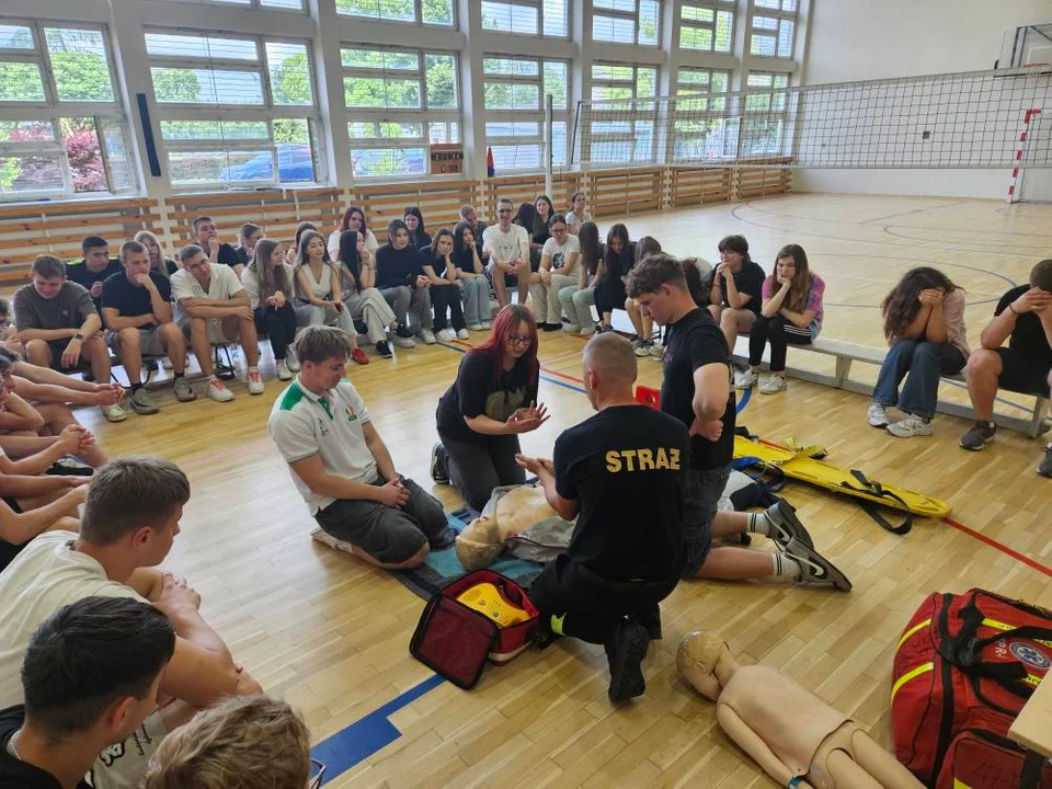 Wydarzenie zorganizowała pani Izabela Opolska. Uczniowie i nauczyciele dziękują strażakom za cenną lekcję – szczególnie teraz, gdy przed nami wakacje i większa swoboda, ale też więcej potencjalnych zagrożeń. Jak podkreślano na szkoleniu: pierwsza pomoc naprawdę może uratować życie.