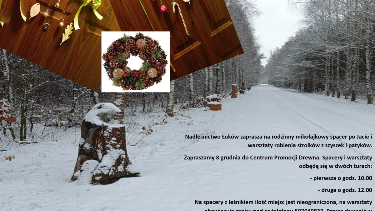Rodzinne warsztaty to doskonała okazja, by stworzyć własnoręcznie piękne ozdoby świąteczne i spędzić czas w miłej, twórczej atmosferze. Liczba miejsc na warsztaty jest ograniczona, dlatego obowiązują zapisy pod numerem telefonu 507 049 833 (zapisy są prowadzone w godzinach pracy Nadleśnictwa: od 7:00 do 15:00).