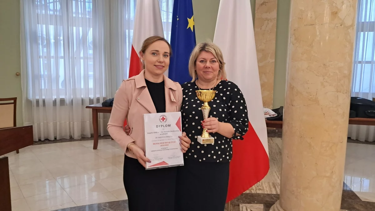 - Nasza szkoła otrzymała nagrodę za zajęcie III miejsca w kategorii Promocja Honorowego Krwiodawstwa. Dyplom oraz statuetkę odebrały opiekunki Szkolnego Koła PCK – p. Agata Żądełek oraz p. Małgorzata Drozd - czytamy na stronie ZS nr 1 w Łukowie.