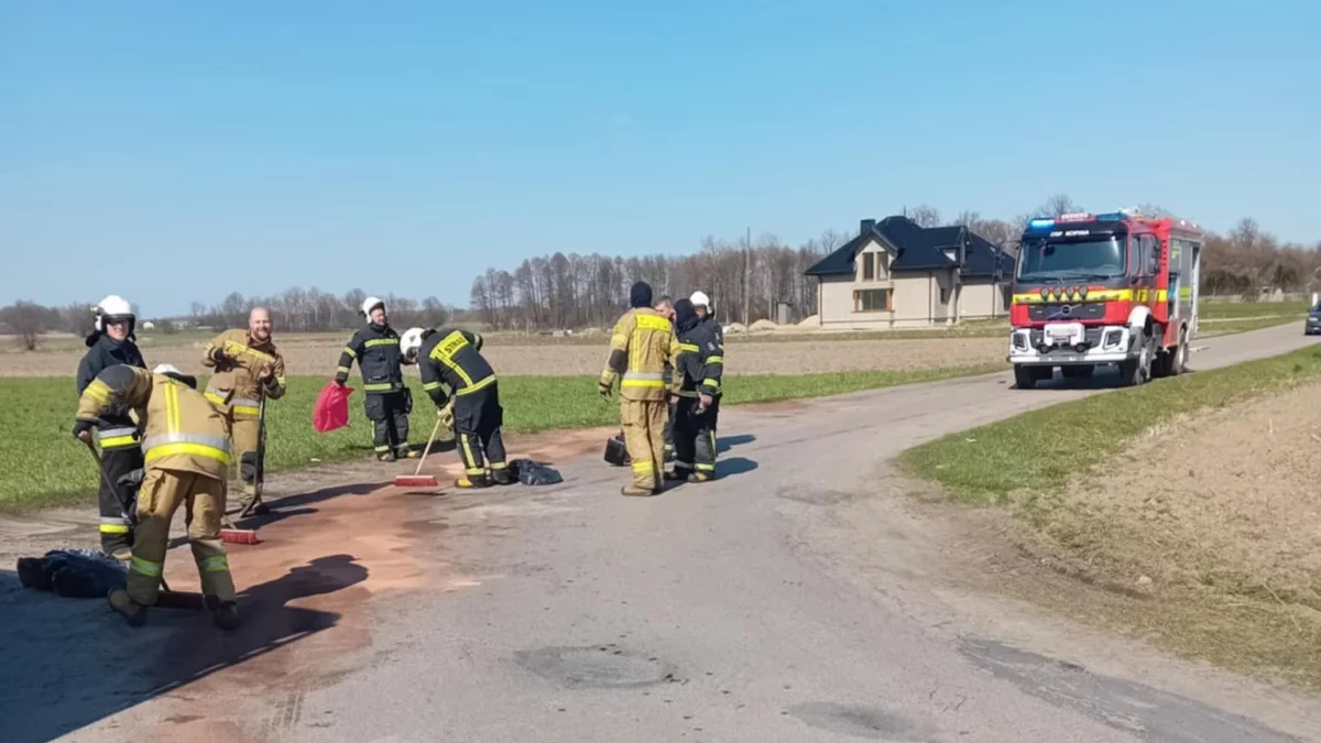 W działaniach wykorzystano specjalistyczny środek, który wchłonął substancję ropopochodną, a następnie usunięto powstałe zanieczyszczenia z nawierzchni drogi.