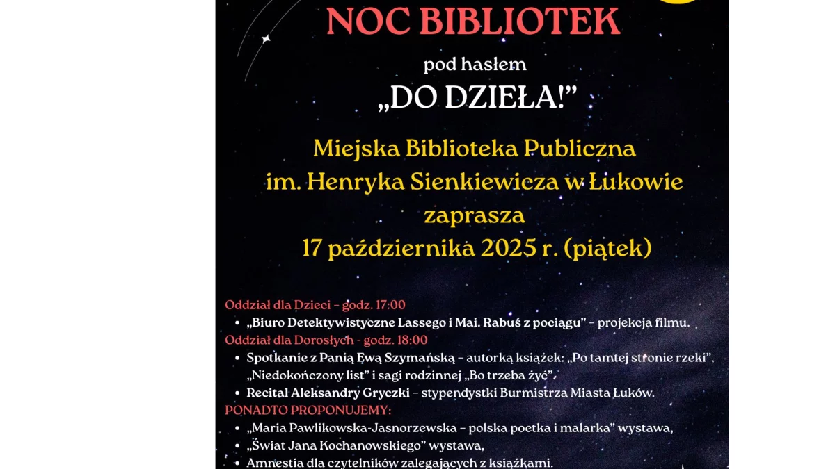 Biblioteka serdecznie zaprasza mieszkańców Łukowa i okolic do wspólnego świętowania Nocy Bibliotek
