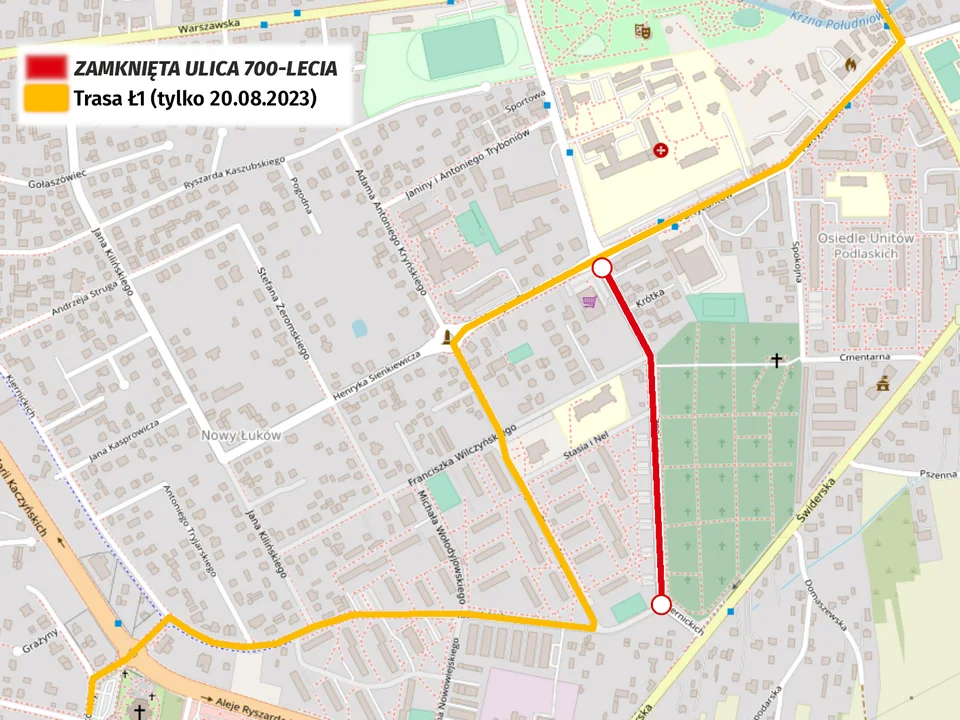 Jak informuje Urząd Miasta Łuków, w niedzielę zostanie zamknięta dla pojazdów ulica 700-lecia. Na ulicy zostaną wyłączone z użytkowania również przystanki autobusowe linii Ł1. Autobusy będą jeździć objazdami.