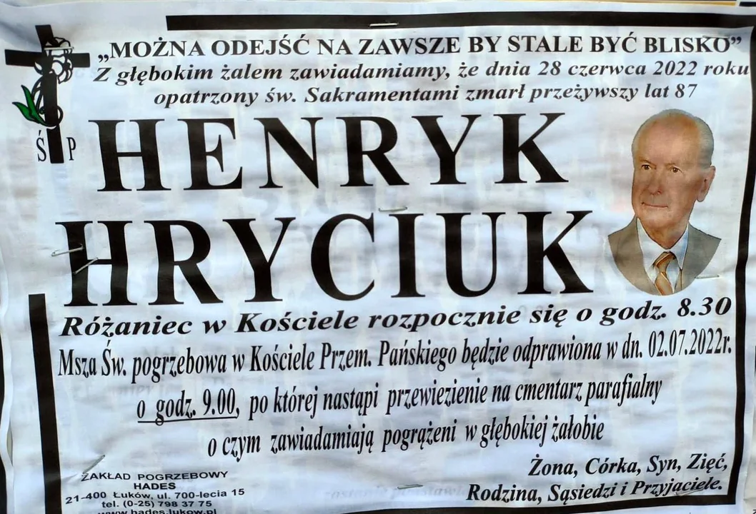 Uroczystości pogrzebowe Śp. Henryka Hryciuka odbyły się w sobotę, 2 lipca o godzinie 9.00 w parafii Przemienienia Pańskiego w Łukowie.