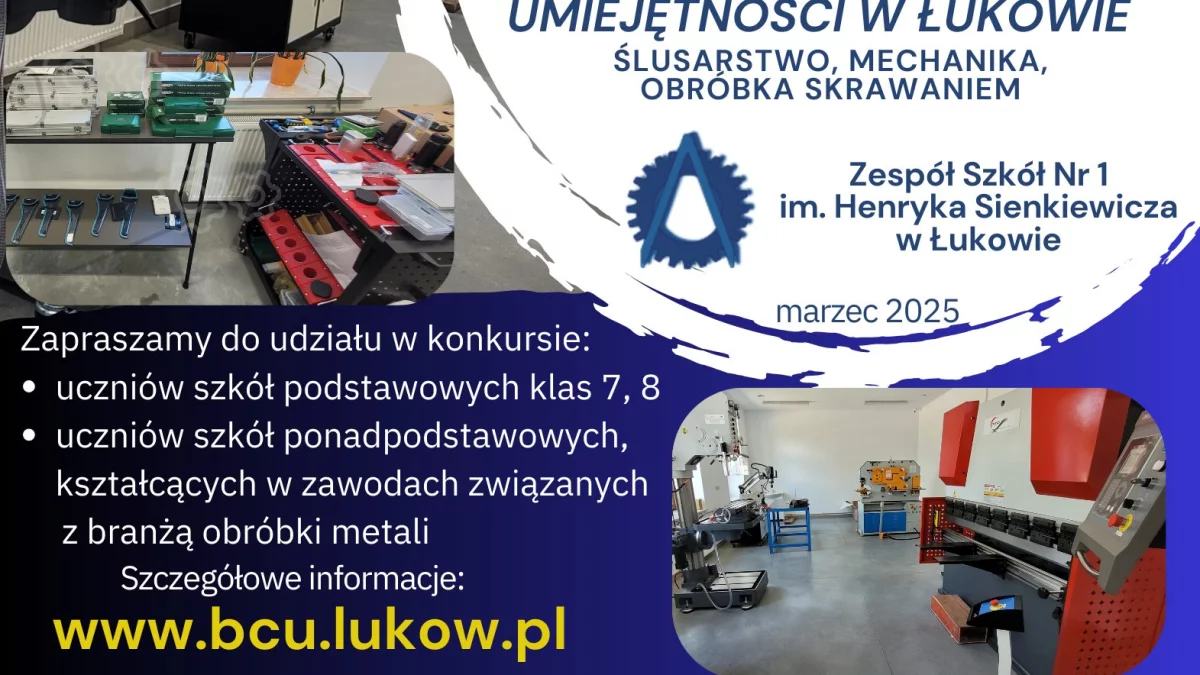 1. Organizatorem konkursu jest Branżowe Centrum Umiejętności w Łukowie ślusarstwo, mechanika, obróbka skrawaniem, Zespół Szkół nr 1 im. H. Sienkiewicza w Łukowie, Al. T. Kościuszki 10, 21-400 Łuków