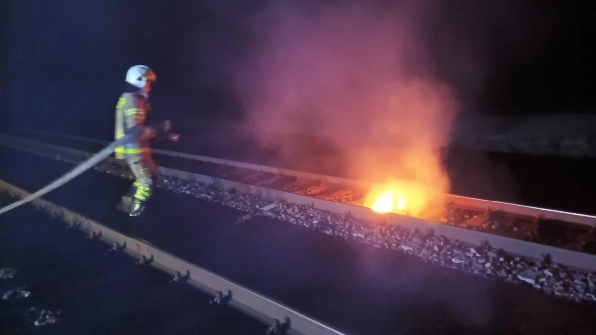 Początkowo zgłoszenie dotyczyło pożaru traw, jednak po przybyciu na miejsce okazało się, że pali się podkład kolejowy znajdujący się na torach.