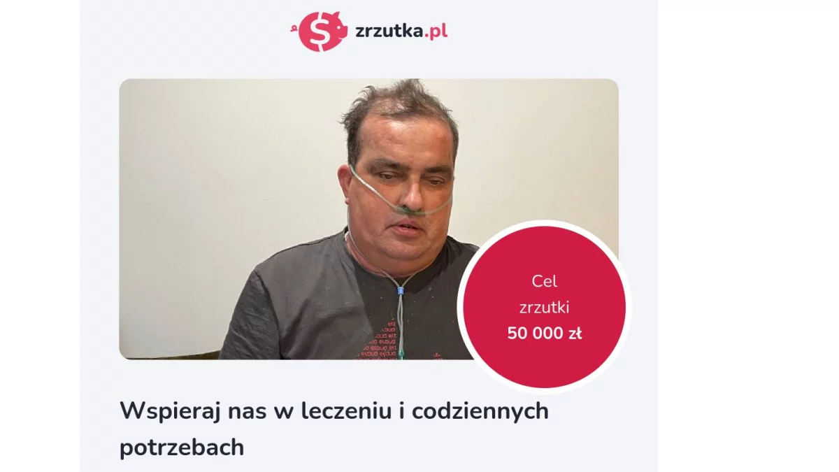 Pan Waldemar w tej trudnej, tragicznej sytuacji życiowej założył zbiórkę na portalu Zrzutka pt. Tytuł zbiórki: "Wspieraj nas w leczeniu i codziennych potrzebach".