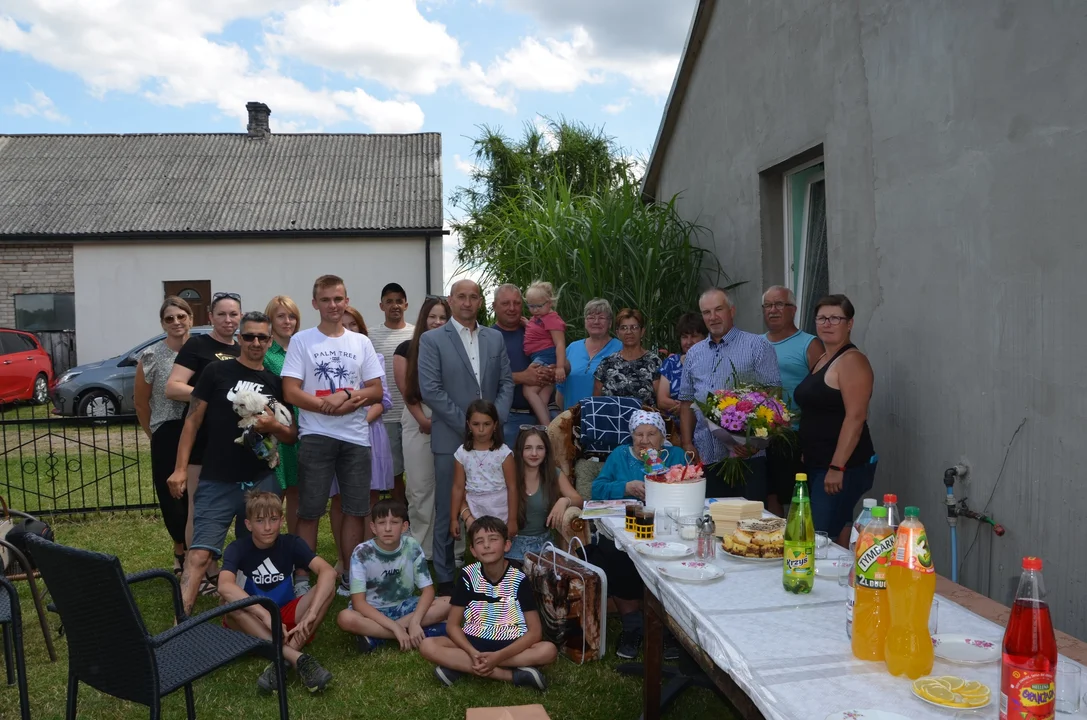 Krzysztof Warda, wójt gminy Krzywda oraz Iwona Jawoszek, Kierownik Urzędu Stanu Cywilnego, w imieniu własnym oraz całej społeczności gminy złożyli 100 – latce gratulacje, życzenia zdrowia, pogody ducha i wyrazy głębokiego szacunku. Wójt wręczył zacnej Jubilatce kwiaty oraz upominek, a także odczytał list gratulacyjny przekazany przez premiera Mateusza Morawieckiego.