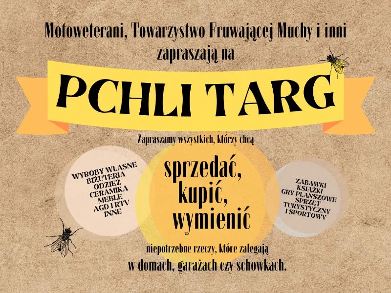 Informacje łukowskieŁUKÓW Motoweterani, Towarzystwo Fruwającej Muchy zapraszają wszystkich, którzy chcą sprzedać, kupić, wymienić niepotrzebne rzeczy, które zalegają w garażach, domach, schowkach na PCHLI TARG, który odbędzie się w najbliższą niedzielę 5 listopada przy skrzyżowaniu ulic Wilczyńskiego i 700-lecia, na placu przy Biedronce.