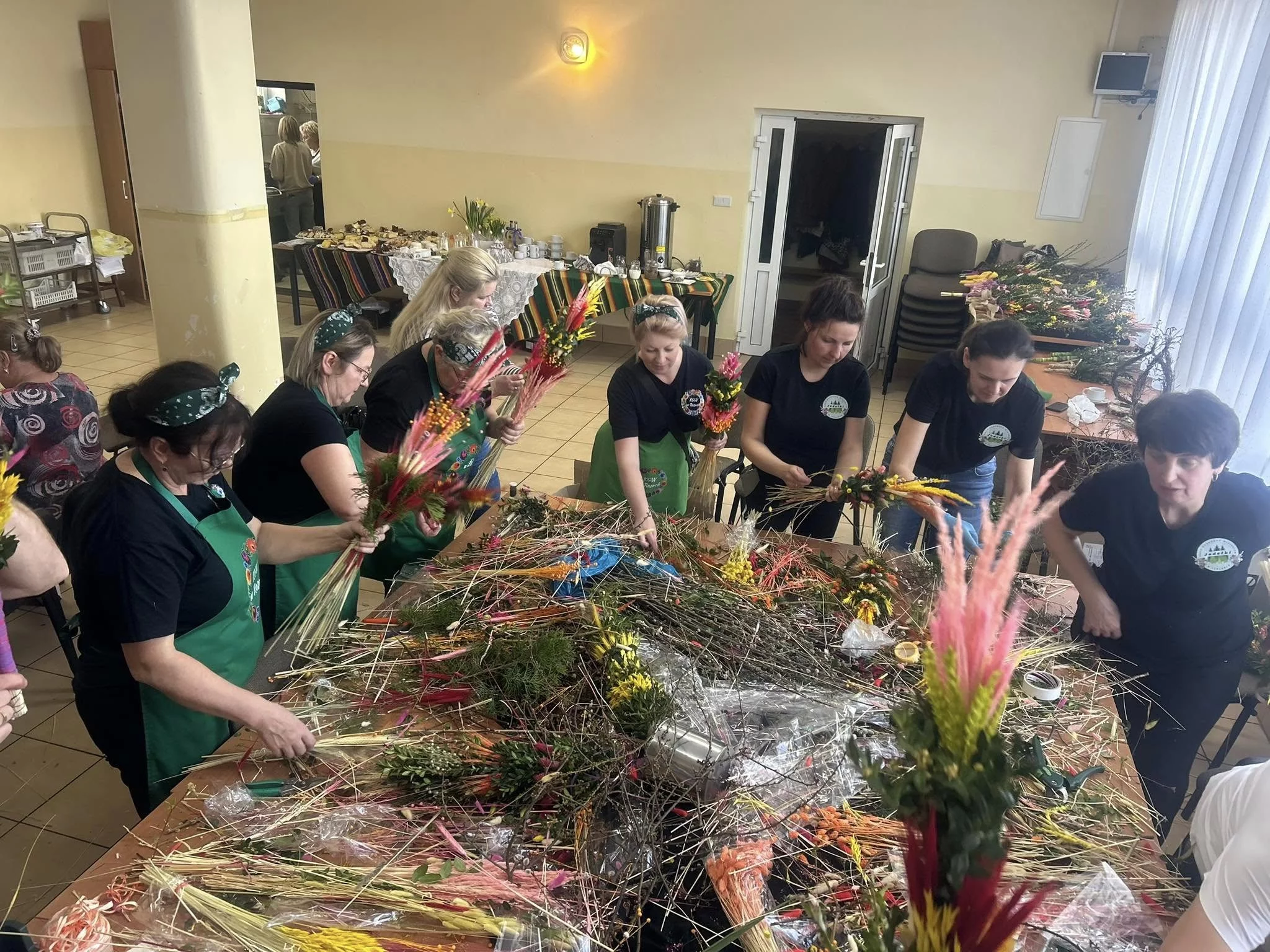 Podczas warsztatów uczestnicy mieli okazję wziąć udział zarówno w zajęciach rękodzielniczych, jak i kulinarnych. Wspólnie tworzono palmy wielkanocne – tradycyjne i nowoczesne – oraz efektowne stroiki świąteczne. Nie zabrakło również części kulinarnej, w której przygotowywano i degustowano barszcz wielkanocny.