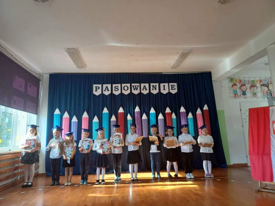 Pierwszaki i przedszkolaki już po pasowaniu. Uroczystość w Woli Okrzejskiej