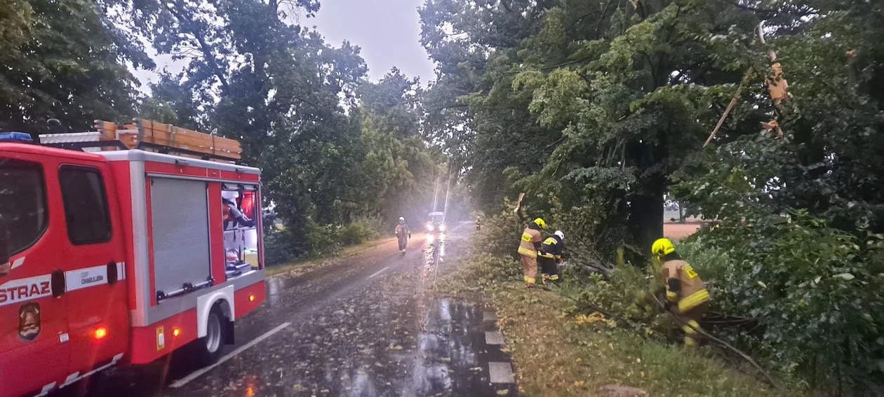 Po zakończeniu akcji gaśniczej, strażacy nie mieli chwili wytchnienia. Otrzymali kolejne wezwanie do usuwania drzew, które burza powaliła na drogi powiatowe i wojewódzkie.