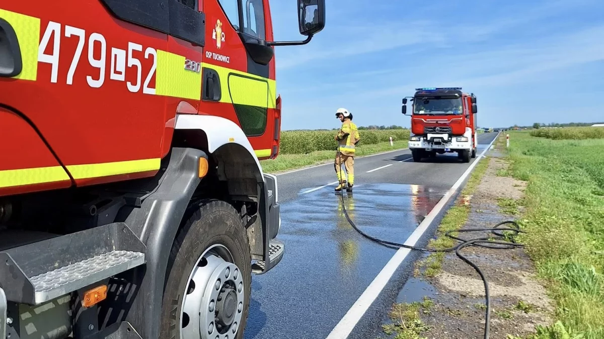 Na jednym z pasów ruchu pojawiła się plama oleju o długości około 300 metrów, stwarzając poważne zagrożenie dla kierowców. Na miejsce zdarzenia natychmiast skierowano dwa zastępy straży pożarnej: jednostkę OSP Tuchowicz oraz JRG Łuków.