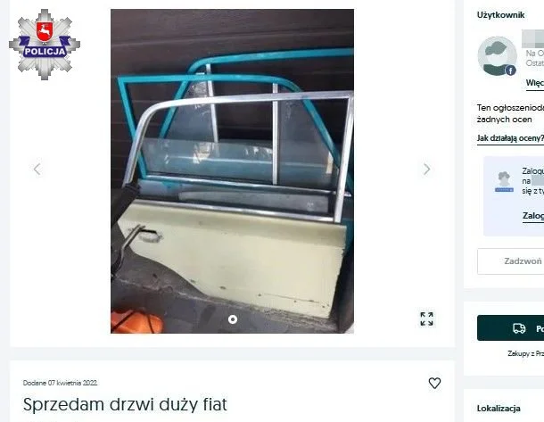 Na jednym z popularnych serwisów aukcyjnych 21-latek zaoferował do sprzedaży drzwi do fiata 125p. Bardzo szybko skontaktowała się osoba zainteresowana kupnem. Za pomocą komunikatora What`s App kupujący wysłał link i zaproponował odebranie drzwi przez kuriera, a dopiero po ich odebraniu 21-latek miał otrzymać pieniądze na konto.