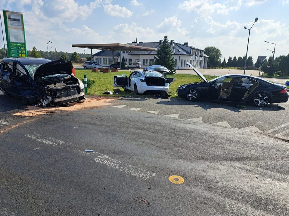 - 23-latka chcąc ustąpić pierwszeństwa przejazdu jadącej z przeciwka Tesli, zmniejszając prędkość swego auta oczekiwała na możliwość kontynuowania dalszej jazdy i właśnie w tym czasie została uderzona w tył swojego samochodu. Wtedy Toyota uderzyła w przejeżdżająca przez skrzyżowanie Teslę. Uderzona przez Toyotę Tesla zjechała na prawą stronę i uderzyła w stojący na drodze podporządkowanej samochód marki Mercedes - dodaje asp. szt. Marcin Józwik.