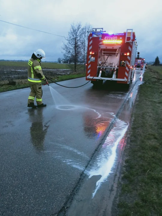 4 stycznia Po godzinie 14, straż pożarna otrzymała wezwanie dotyczące wycieku oleju napędowego na odcinku drogi Dwornia-Jarczew. Plama oleju była sięgała aż 3 kilometrów.