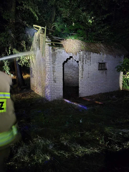 Palił się mały budynek z cegły i strzechą na dachu. Nie ma informacji o tym, czy ktoś ucierpiał. Na miejscu pracowały łącznnie 4 jednostki straży pożarnej.