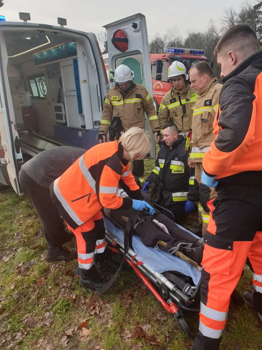 - Podczas wycinki drzewa w lesie ranna w nogę została kobieta. Udzieliliśmy pierwszej pomocy kobiecie i na noszach ok 700 m. ewakuowaliśmy z miejsca zdarzenia. Ranną kobietę przekazaliśmy zespołowi ratownictwa medycznego z Łukowa która w trakcie dojazdu do chorego utknęła w błocie na drodze gruntowej - informuje OSP Wilczyska.