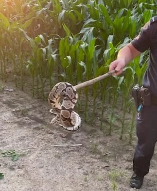 - Kontaktując się z lekarzem weterynarii ustaliła, że najprawdopodobniej jest to pyton królewski. Nim dojechali tam policjanci wąż uciekł w pobliskie pole porośnięte kukurydzą. Tam odnaleźli go łukowscy mundurowi. Okazało się, że odnaleziony gad miał ponad metr długości. Niecodzienne znalezisko zabezpieczyli strażacy, przekażą je przedstawicielowi organizacji zajmującej się zwierzętami - informuje asp. szt. Marcin Józwik z KPP w Łukowie