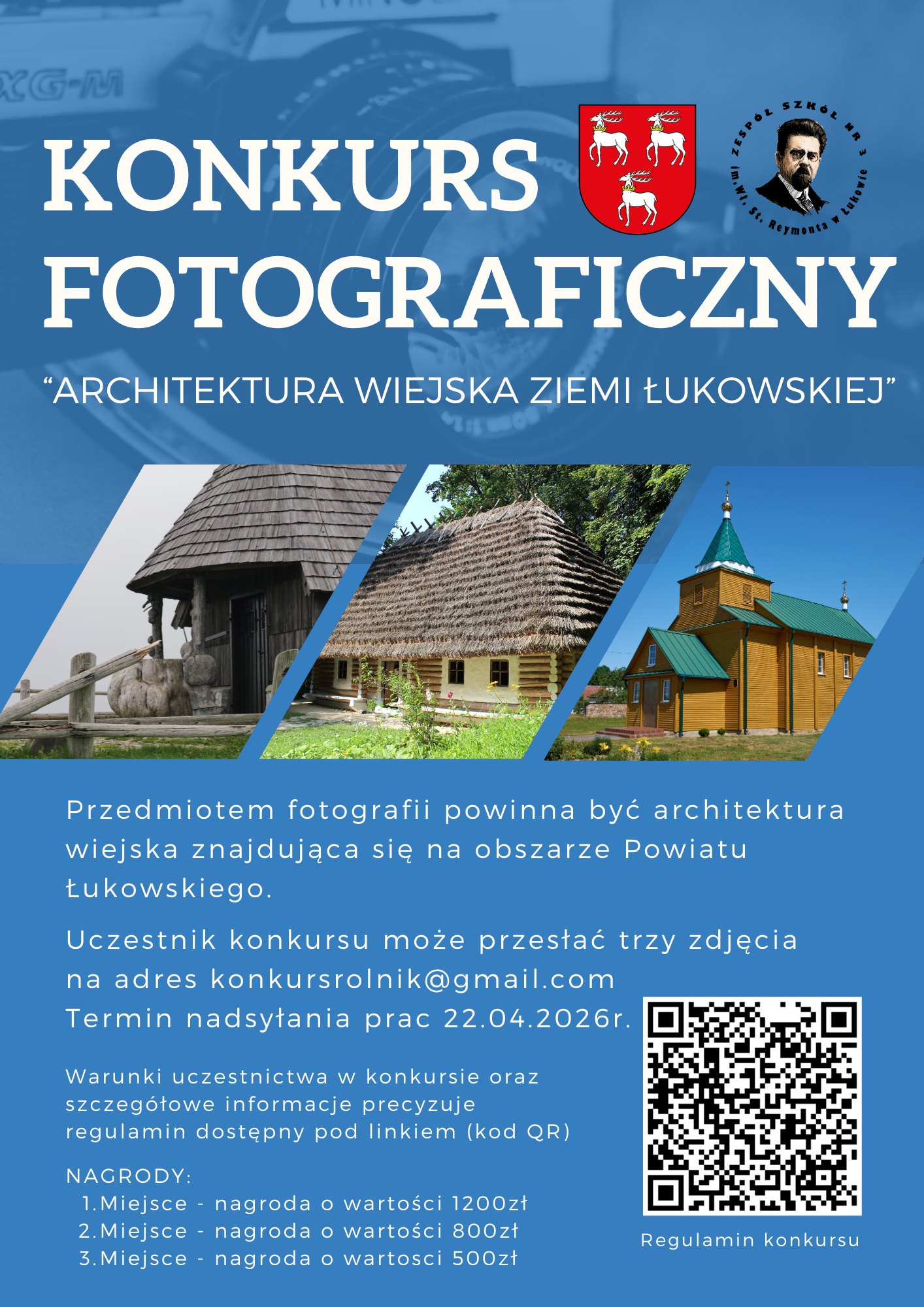 W tytule wiadomości należy wpisać: Konkurs fotograficzny „ARCHITEKTURA WIEJSKA ZIEMI ŁUKOWSKIEJ”.