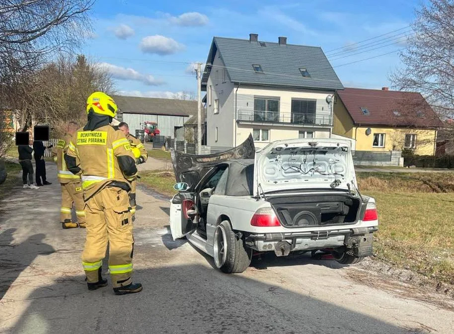 Pożar BMW na drodze