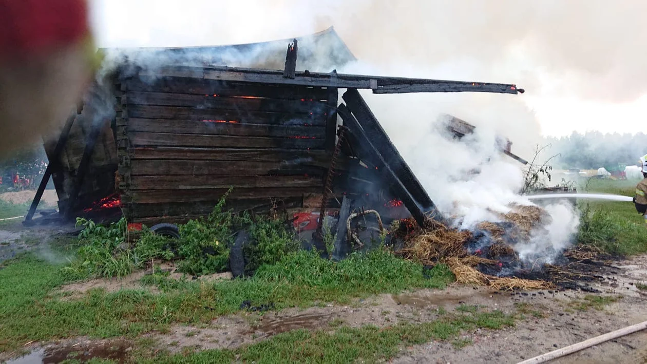 Pożar wybuchł w wyniku intensywnej burzy, która przetoczyła się przez region. Około godziny 16:15 strażacy otrzymali zgłoszenie o płonącym budynku. Pomimo szybkiej reakcji jednostek ratowniczych, ogień zdołał zniszczyć cały obiekt, w którym znajdowały się bele słomy i siana.