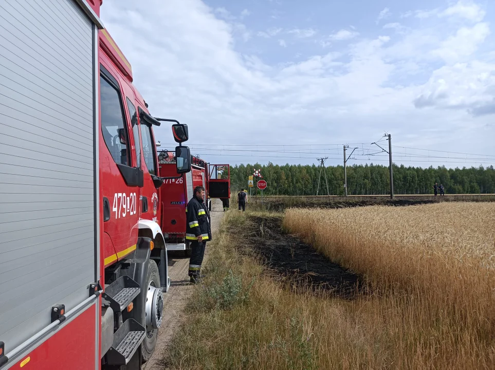 Do niebezpiecznego pożaru doszło dzisiaj przed godziną 10. Przy torach kolejowych w Zastawiu (gm.Stanin) zaczęły palić się nieużytki na nasypie kolejowym oraz zboże znajdujące się tuż przy nim.