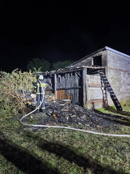 W wyniku pożaru spaleniu uległ budynek gospodarczy wraz z zawartością (materiały drewnopochodne).