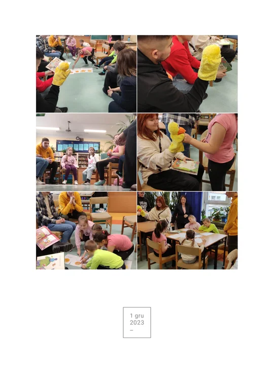 28 listopada br. uczniowie: Maria z 2Te, Alina z 1Tp, Artem z 2Tp, Ilia z 1Ti, Karol i Kuba z 3Tel pod opieką pań Małgorzaty Małkińskiej, nauczyciela bibliotekarza, i Renaty Kożuch - Sierociuk, nauczyciela j. polskiego, odwiedzili Szkołę Podstawową nr 4 z Oddziałami Integracyjnymi im. B. Chącińskiego w Łukowie.