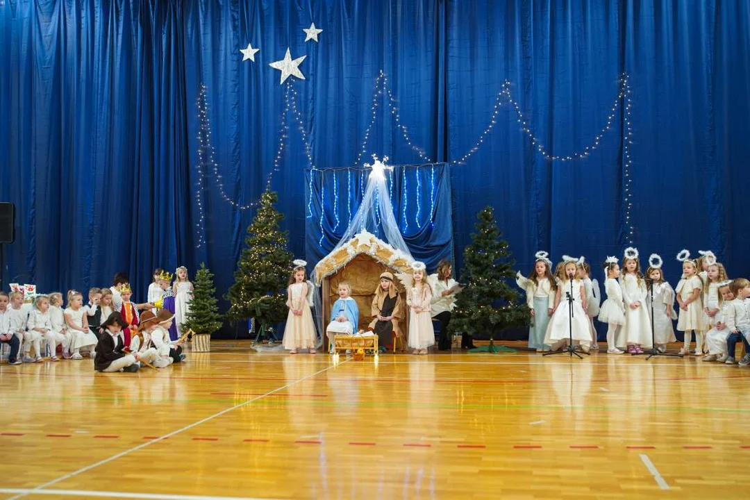 Wydarzenie było dedykowane Babciom i Dziadkom z okazji Ich święta oraz Rodzicom, Nauczycielom i członkom Klubu Seniora z Gołąbek. Dzieci wystąpiły w części artystycznej, do której przygotowały je Patrycja Skrzypiec i Anna Chmielewska. Najmłodsi przedstawili scenki z narodzin Pana Jezusa, które były przeplatane pięknymi kolędami i pastorałkami. W części tanecznej wystąpiła grupa aniołków prezentując taniec ze światełkami. Było magicznie i wzruszająco, a brawom dla dzieci nie było końca.