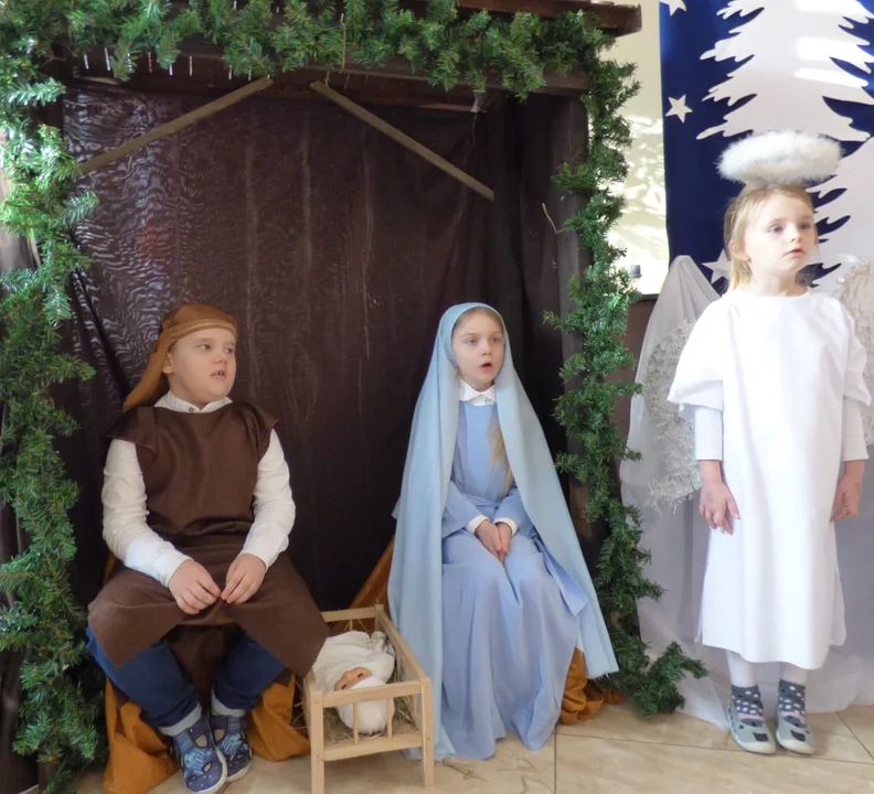 Podczas wizyty 17 stycznia u seniorów dzieci wcieliły się w role aktorów i zaprezentowały montaż słowno - muzyczny o narodzinach Pana Jezusa.