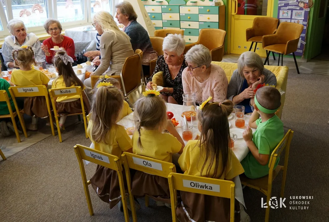 - Podczas wydarzenia dzieci z przedszkolnych grup zaprezentowały program artystyczny pt. „Jesienny koncert". Seniorki z ŁUTW doceniły występy dzieci, włączając się we wspólną zabawę i integrację międzypokoleniową, skupioną na dialogu zróżnicowanych wiekowo grup społecznych - mówi Tomasz Kanadys, instruktor Łukowskiego Ośrodka Kultury. - Spotkanie było okazją do świętowania zbliżającego się Ogólnopolskiego Dnia Seniora. Był to czas pełen miłych rozmów, wspólnego przebywania, wzajemnych podziękowań i upominków.