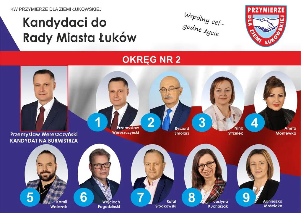 Mieszkańcy Łukowa będzie wybierać swoich przedstawicieli do Rady Miasta z trzech okręgów wyborczych, gdzie każdy okręg ma do obsadzenia siedem miejsc. Prezentujemy kandydatów do rady z listy Przymierza dla Ziemi Łukowskiej.
