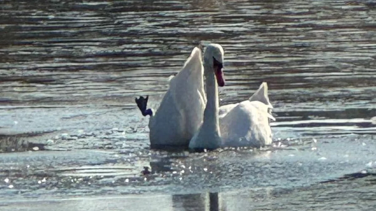 Zgłoszenie dotyczyło przymarzniętych łabędzi w zbiorniku wodnym.