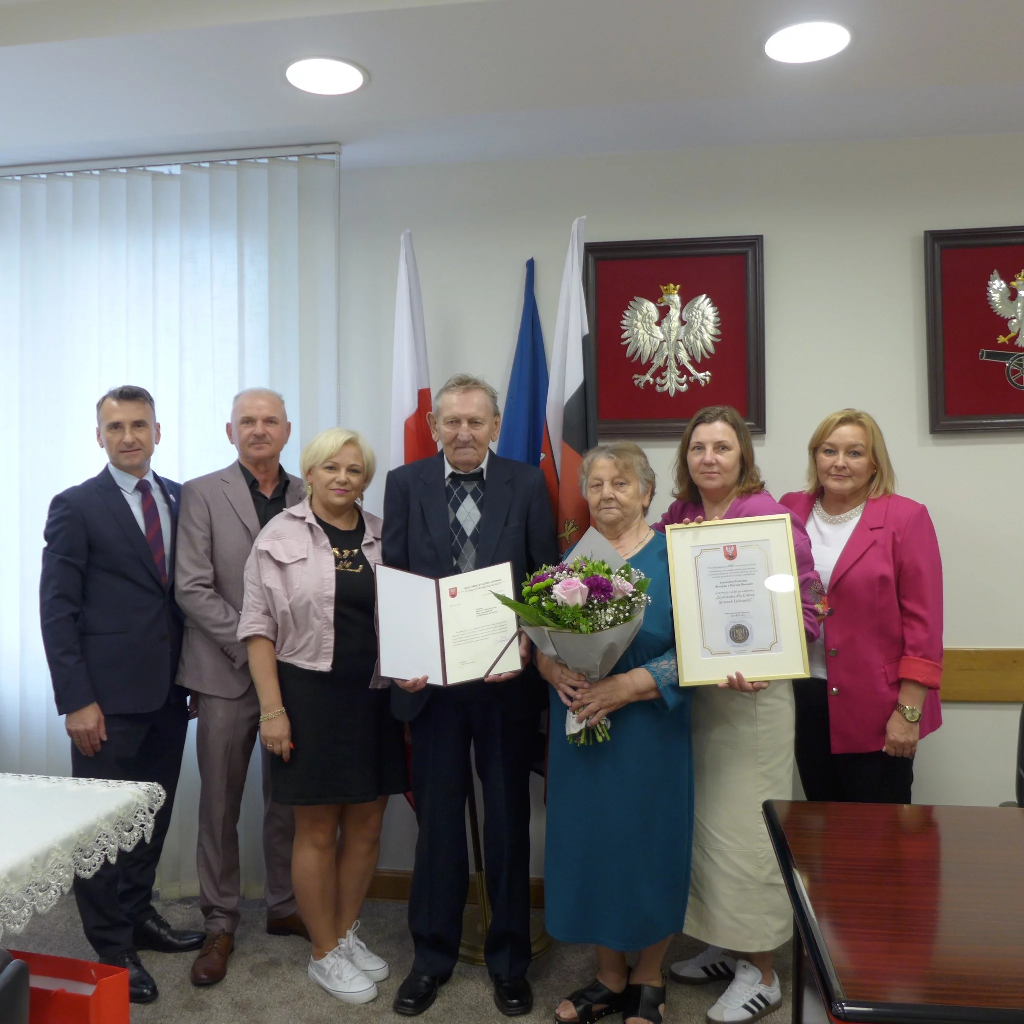 Uroczystość odbyła się 9 lipca. Zastępca Wójta Zbigniew Bogusz, Krzysztof Rosa i Jarosław Domański oraz inspektor Agnieszka Więckowska mieli zaszczyt spotkać się z parami obchodzącymi Diamentowe Gody, a także z ich rodzinami.