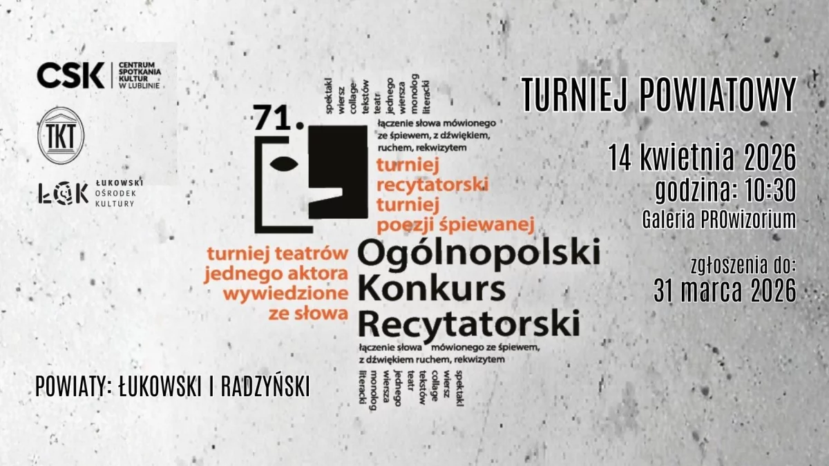 Ogólnopolski Konkurs Recytatorski organizowany jest przez Towarzystwo Kultury Teatralnej i należy do najdłużej funkcjonujących przeglądów sztuki słowa w Polsce. W województwie lubelskim koordynację poszczególnych etapów prowadzi Centrum Spotkania Kultur w Lublinie. Eliminacje odbywają się w systemie trzystopniowym i obejmują przeglądy środowiskowe, następnie międzypowiatowe oraz etap wojewódzki.