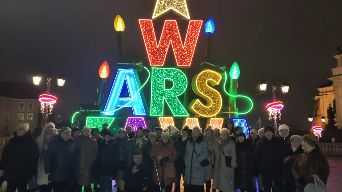 Po spacerze w świetlistej scenerii uczestnicy wyjazdu odwiedzili Plac Zamkowy w Warszawie. Podziwiali tam świąteczną choinkę o wysokości 27 metrów, ozdobioną ponad 40 tysiącami światełek, a także iluminacje na Trakcie Królewskim.